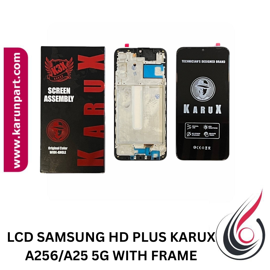 ال سی دی Samsung A25 5G / A256 مدل HD Plus برند KARUX با فریم، مناسب برای تعویض صفحه شکسته با کیفیت عالی و تست‌شده در کارون پارت.