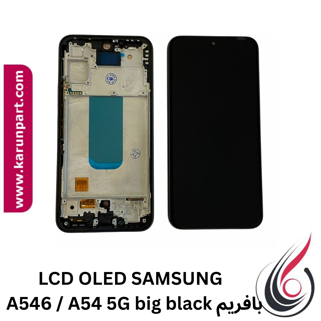 ال سی دی OLED سامسونگ A546 (A54 5G) مشکی با فریم، کیفیت اورجینال سرویس پک، رزولوشن 2440 و عملکرد تاچ فوق‌العاده. موجود در کارون پارت.