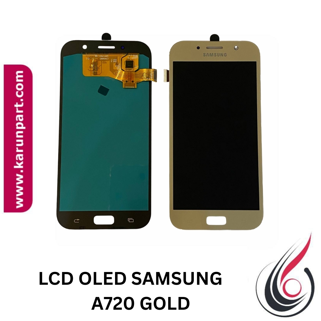 ال سی دی OLED سامسونگ A720 (A7 2017) طلایی با رزولوشن 1530، کیفیت اورجینال سرویس پک و حساسیت بالای تاچ. موجود در کارون پارت.